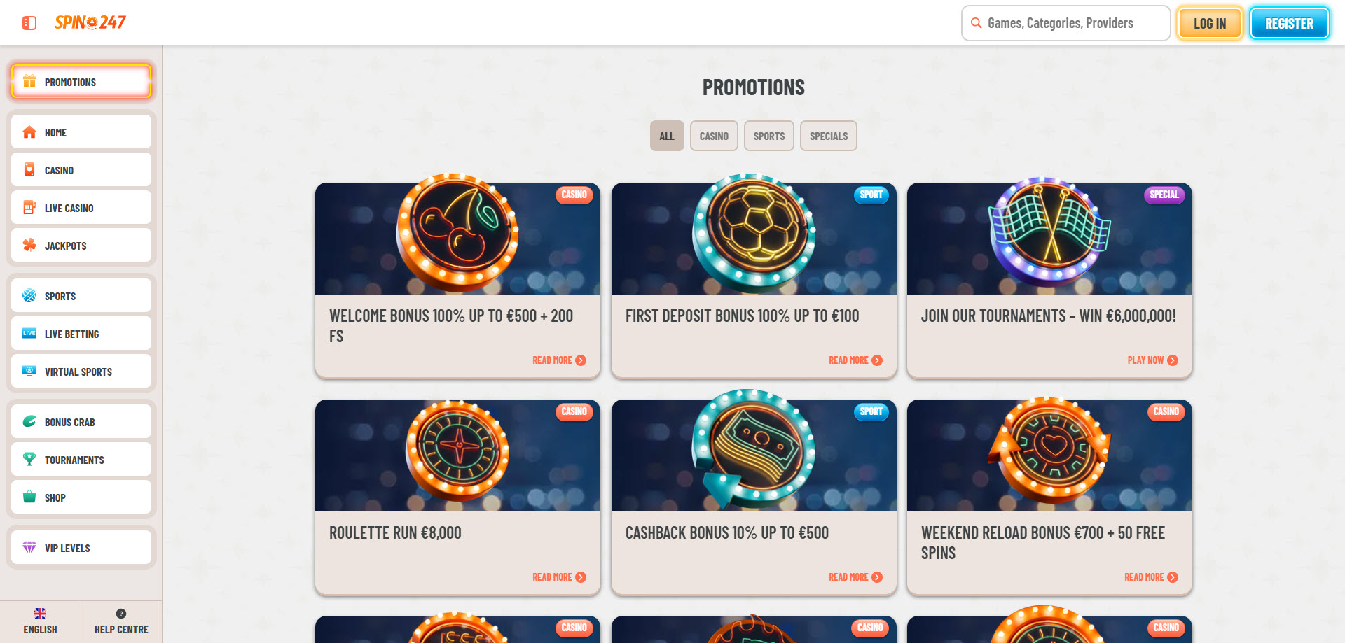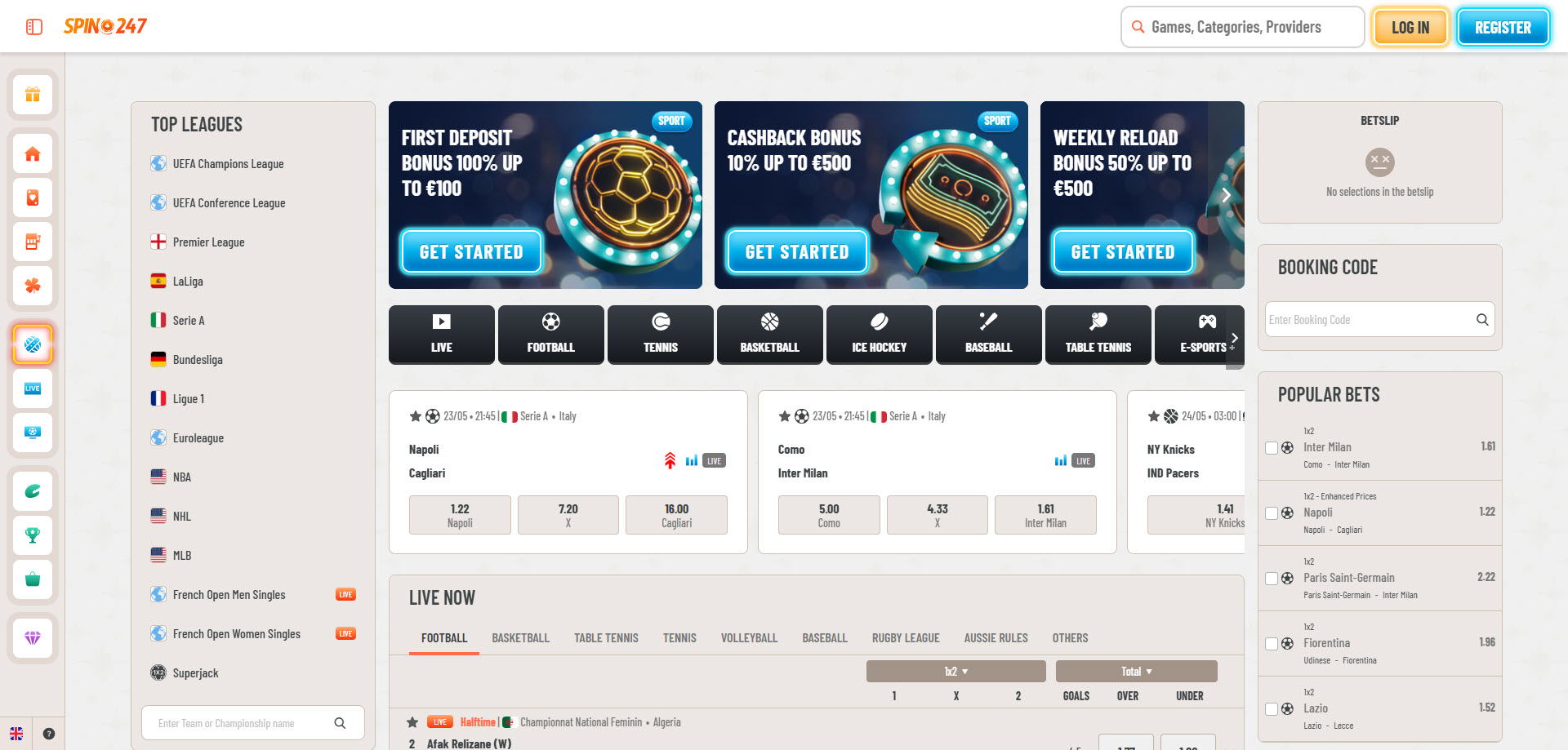 O Spin247.com oferece um portfólio diversificado de produtos, atendendo a uma ampla gama de preferências de jogo: