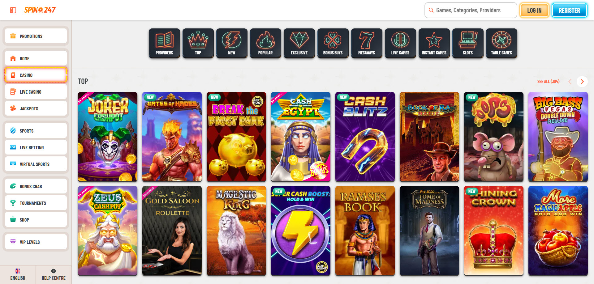 - Cassino: Mais de 12.236 caça-níqueis, incluindo Vídeo Caça-Níqueis, Caça-Níqueis Clássicos, Jackpots Progressivos, Megaways, Caça-Níqueis Exclusivos, Caça-Níqueis com Compra de Bônus, Caça-Níqueis de 5 Rolos e Slingo, fornecidos por 117 provedores de caça-níqueis.