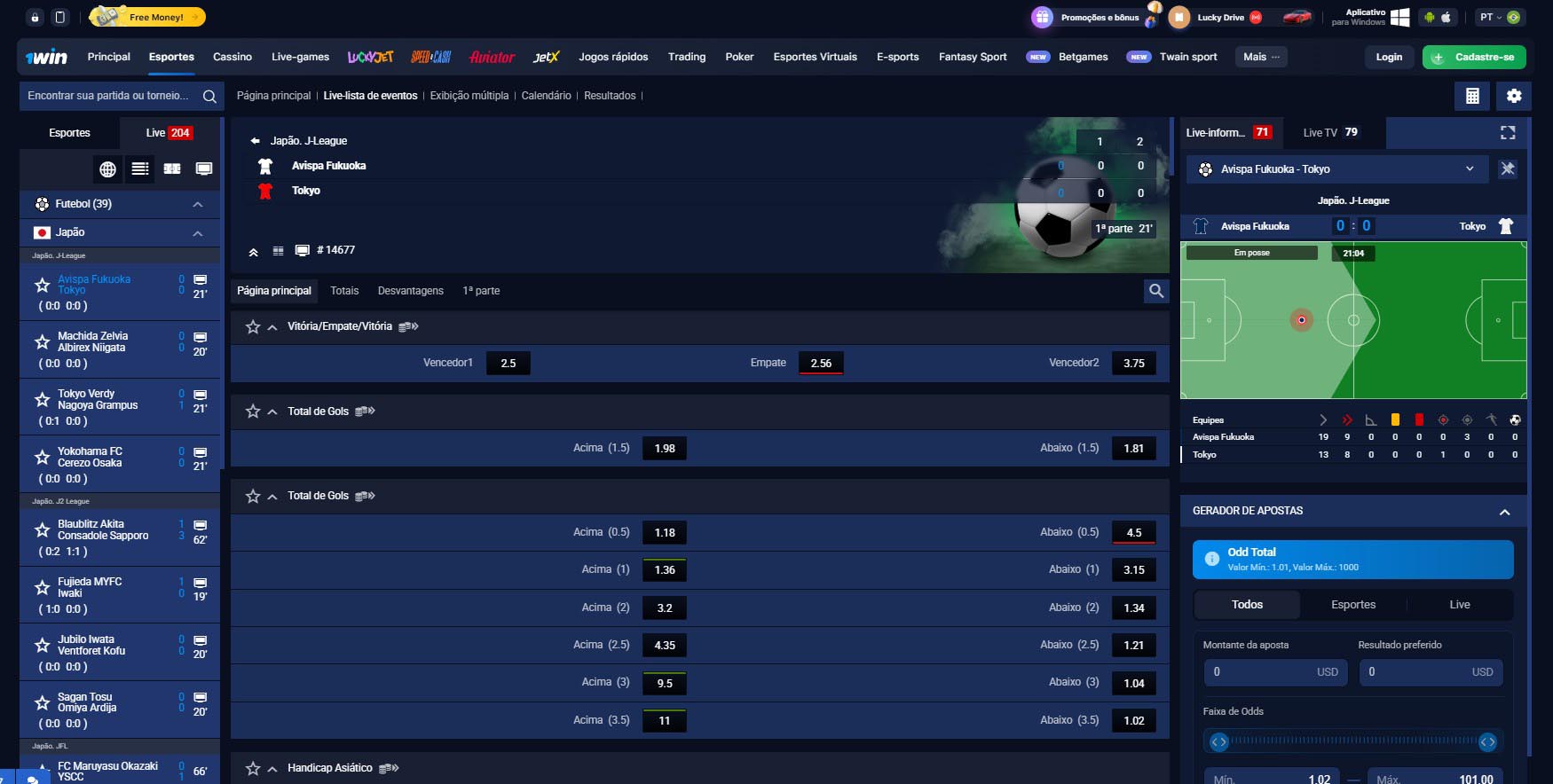 Variedad de Deportes: La plataforma ofrece apuestas en una amplia gama de deportes, incluyendo fútbol, baloncesto, tenis y títulos de e-sports como Dota 2, CS:GO y League of Legends. La inclusión de jackpots progresivos y un proveedor de plataforma de casa de apuestas (no especificado) sugiere una infraestructura robusta de apuestas.