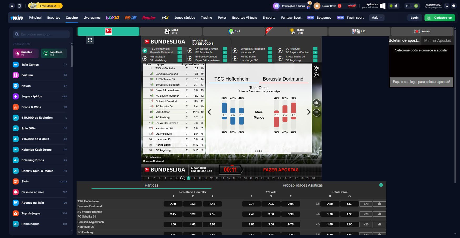 Extensa gama de opciones de apuestas, incluyendo deportes, casino, juegos en vivo, juegos virtuales y juegos de TV.