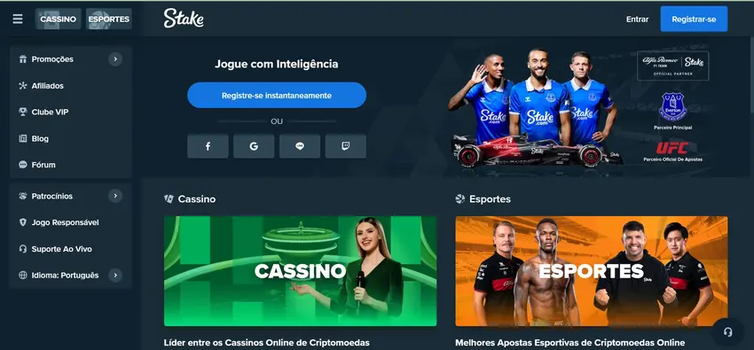 Feito isto, você já pode começar fazer apostas na Stake. Caso você possua um código promocional Stake, pode utilizá-lo no ato do cadastro. Informamos que também é possível se cadastrar com os dados de sua conta do Facebook, Google, Line ou Twitch.